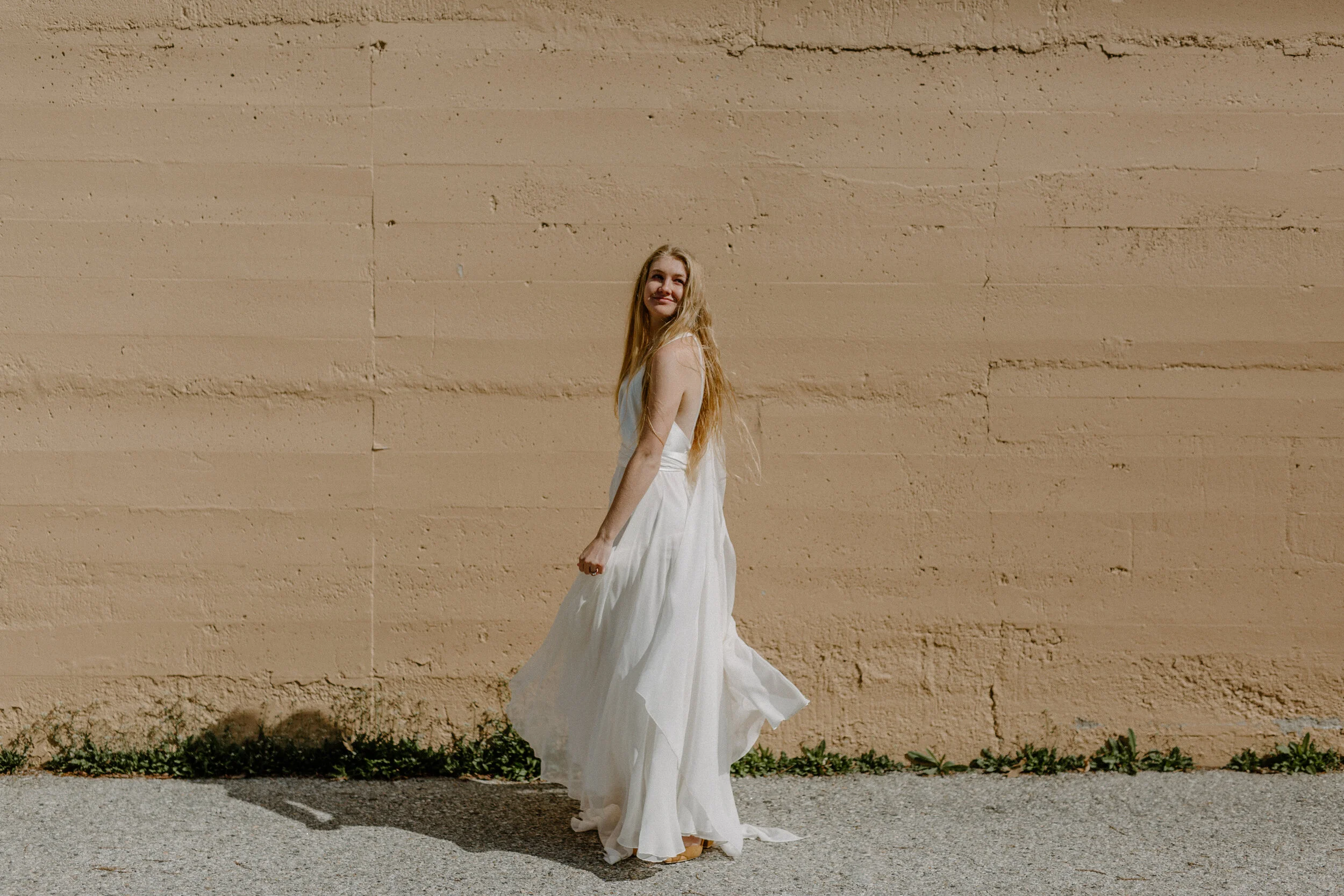 Minimalist Desert inspired bridal Editorial with Lynn wedding dress downtown Boise