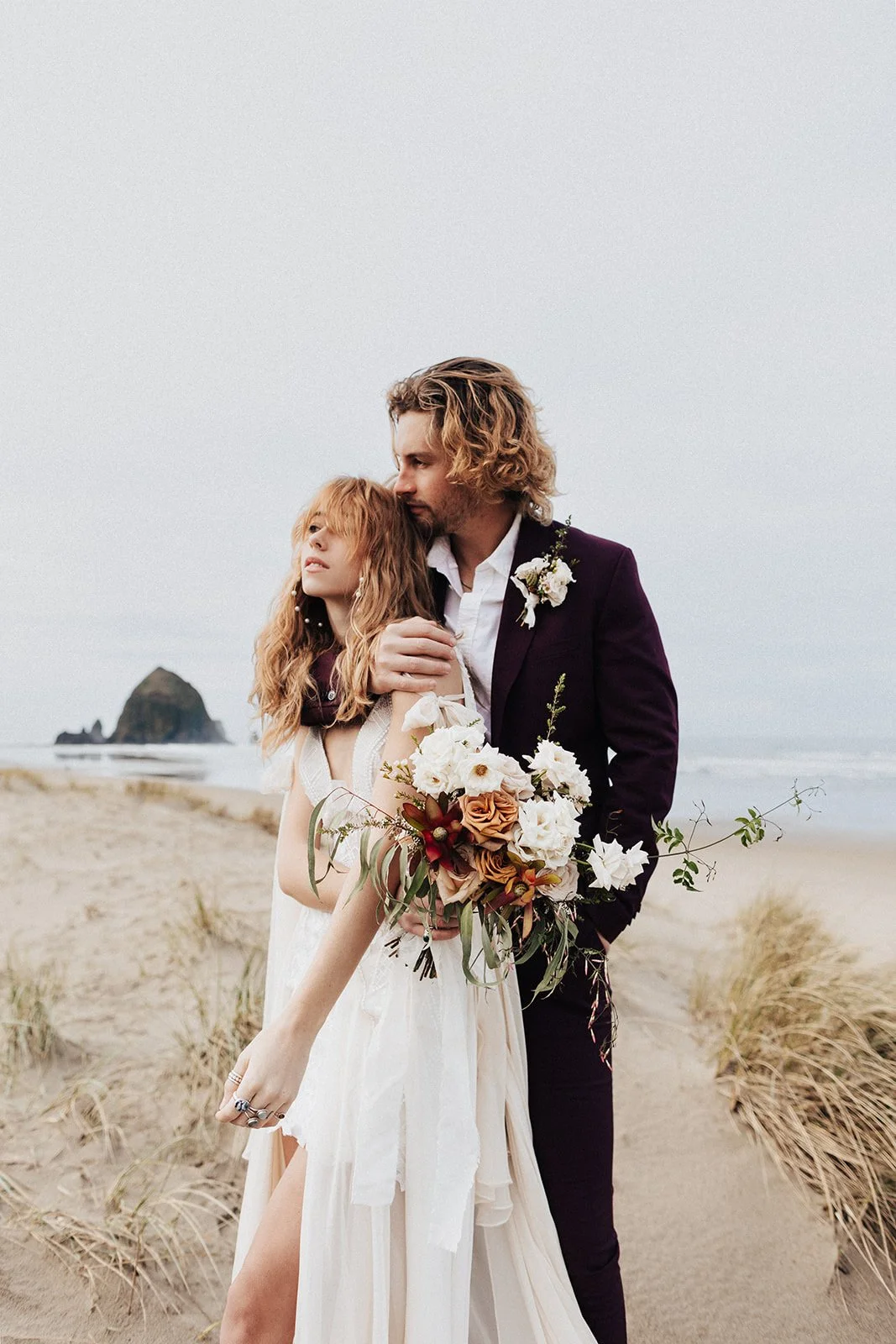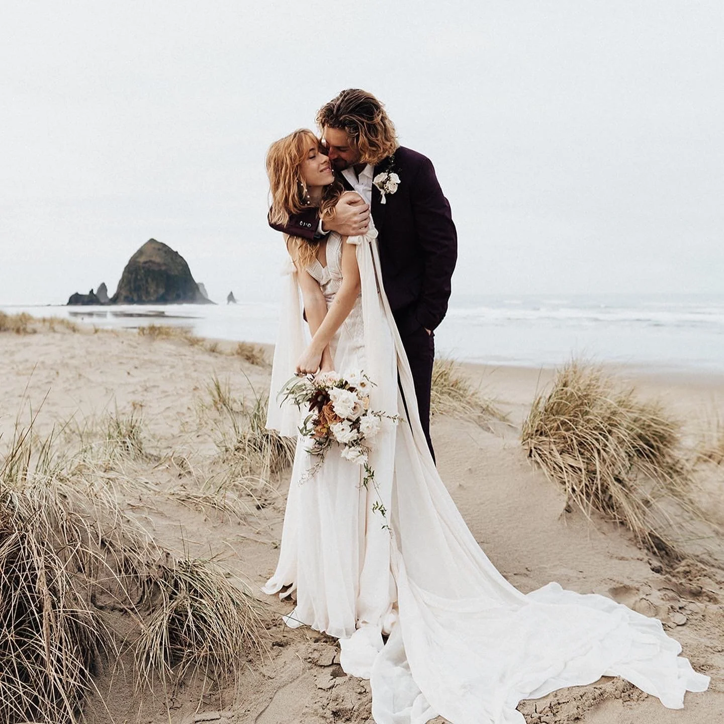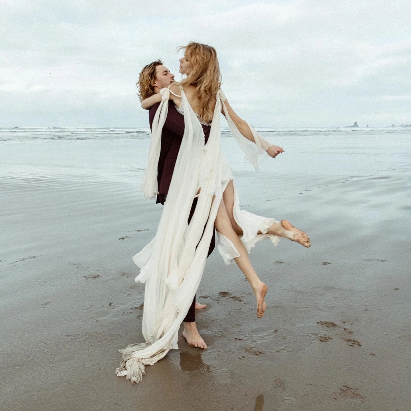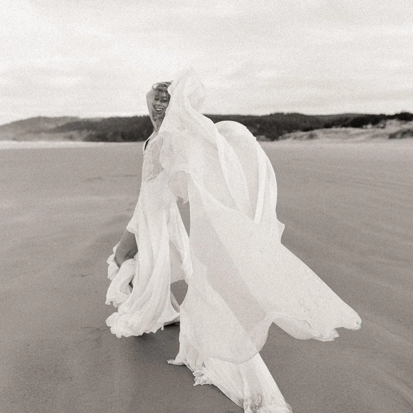This is a creative photoshoot in Cannon beach featuring Mia wedding dress and Bella bridal cape. We are always so excited to collaborate with Madison Maltby Photography. This fun shoot was published on Dirty Boots and Messy Hair blog!