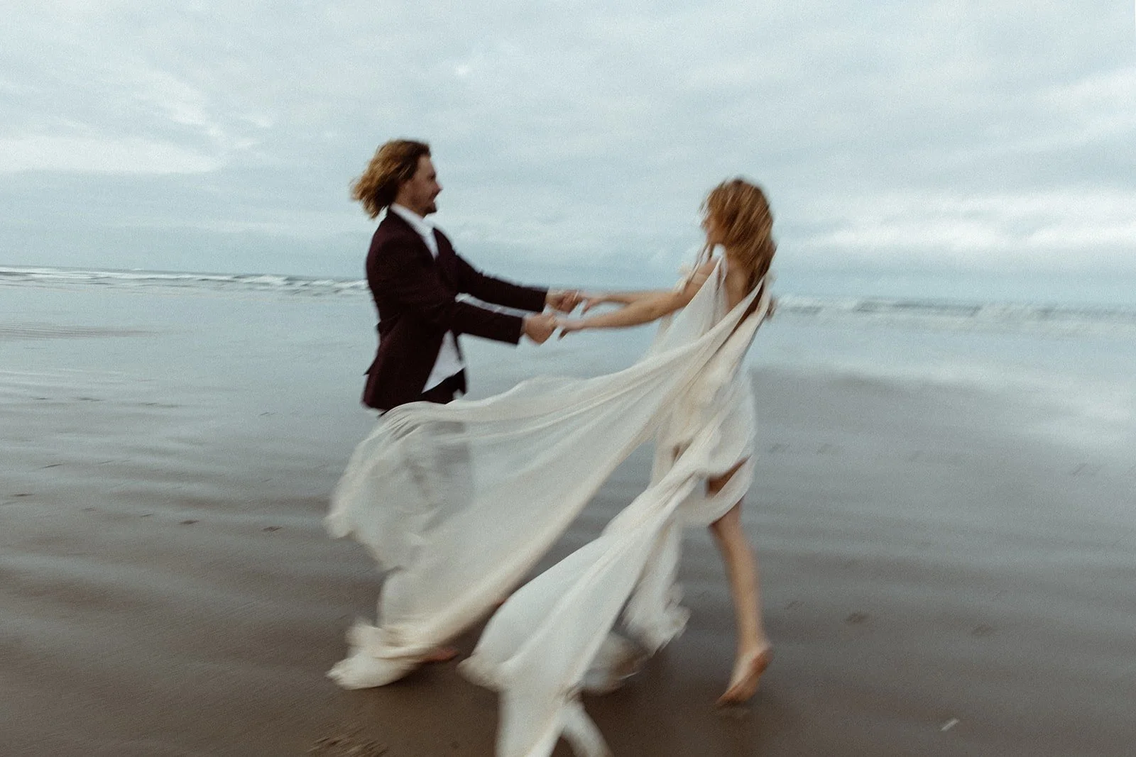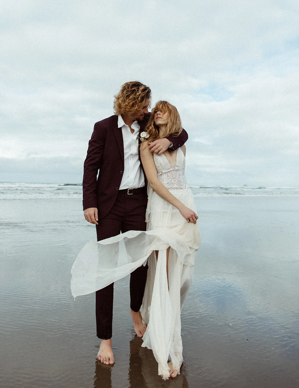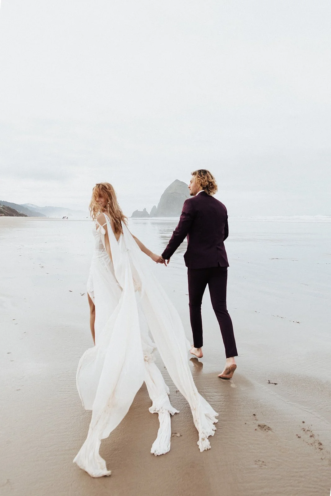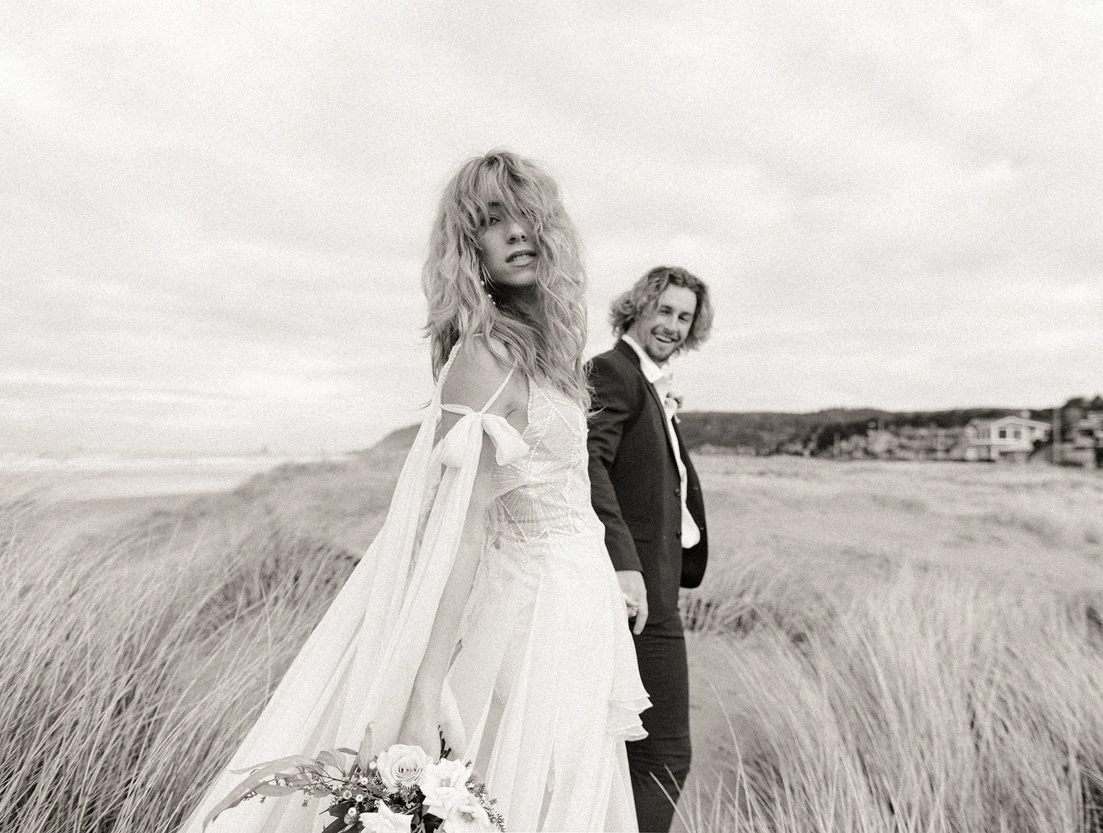 This is a creative photoshoot in Cannon beach featuring Mia wedding dress and Bella bridal cape. We are always so excited to collaborate with Madison Maltby Photography. This fun shoot was published on Dirty Boots and Messy Hair blog!